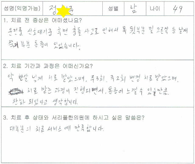 정*준님 치료후기 감사합니다(자동차사고,뒷목,등)